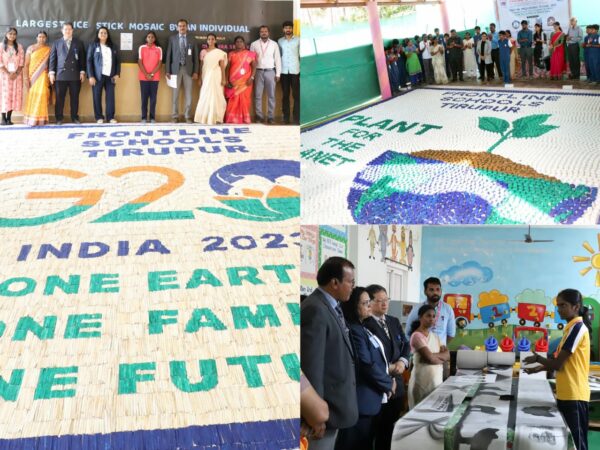 August 2, 2023, Tamil Nadu, India.,Frontline Schools in Tirupur, create Waves with Remarkable World Records, inspiring Patriotism, Creativity, Sportsmanship, and Environmental Consciousness. Students showcase dedication, unity, and talent in commemorating….
