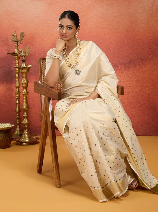 – Likha Kasavu Sarees: Celebrate Onam with the timeless elegance of classic Kasavu sarees from Likha. The Onam Kasavu Cotton Zari Work Printed Off White Saree and Gold Onam Kasavu Cotton Zari Saree from Likha embody Kerala’s cultural richness.