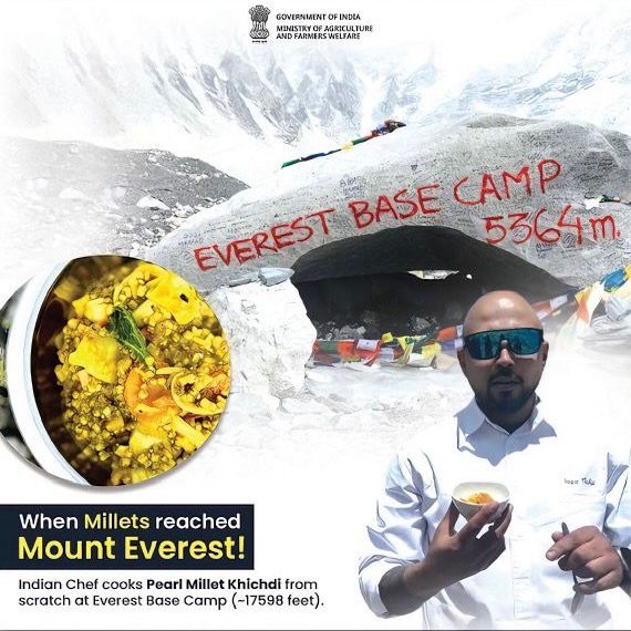 In a historic initiative aimed at promoting healthy eating, Chef Sanjay Thakur embarked on an extraordinary culinary journey to the Mount Everest Base Camp, where he showcased the versatility and nutritional benefits of millets. This initiative, inspired by the vision of Indian Prime Minister Shri Narendra Modi, aims to emphasize millets as a vital part of sustainable agriculture and a superfood for the future.