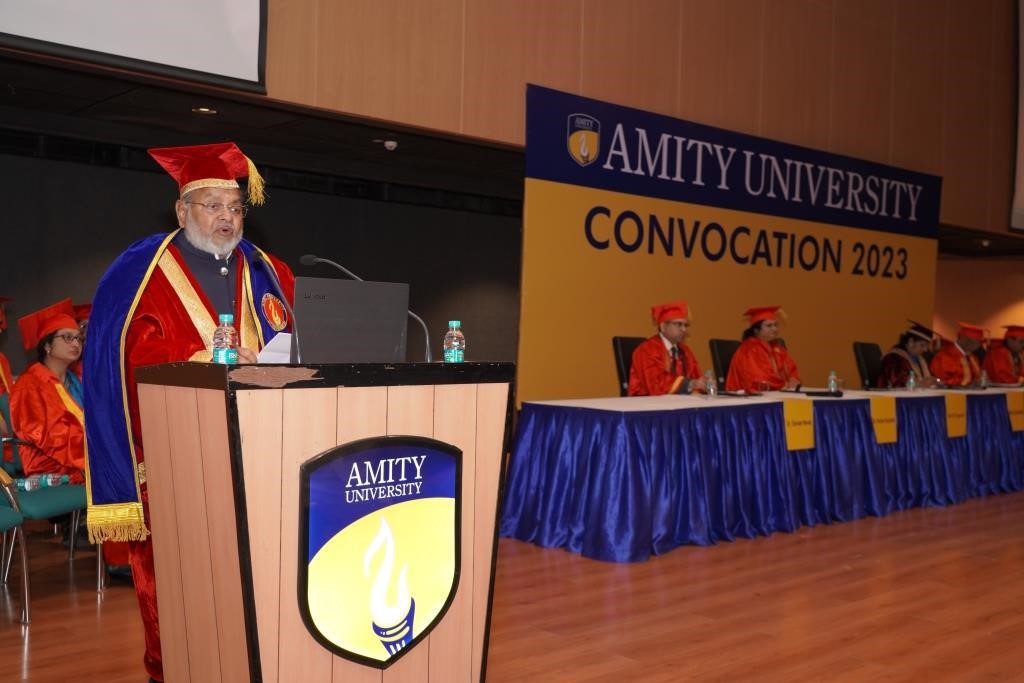 Honoured by the recognition, Mr. R. G. Agarwal expressed his heartfelt gratitude to the Chancellor, Vice Chancellor, and the entire executive committee of Amity University. In his speech, he highlighted the critical roles played by teachers and parents in shaping the destinies of students. Mr. Agarwal also emphasized the need to bridge the gap between theory and practice, urging us to extend the lessons learned beyond the four walls of academia and into dynamic real life.