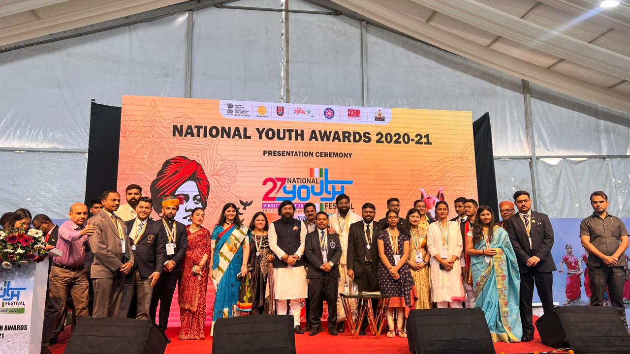 The 27th National Youth Award was successfully held in Nashik on January 15, 2024, during the 4th day of the National Festival. Fifteen youth from across the country were honored with the National Youth Award 2021 during this event, presented by the esteemed Hon.Minister of State for Youth Affairs and Sports, Mr. Nisith Pramanik. The ceremony was attended by Hon. Ms. Vanita Sood, Director of the Ministry of Youth Affairs, Hon. Mr. Radhakrishna Game, Commissioner of the respective department, and Hon. Dr. Suhas Diwase, the respected Sports Commissioner of Maharashtra.