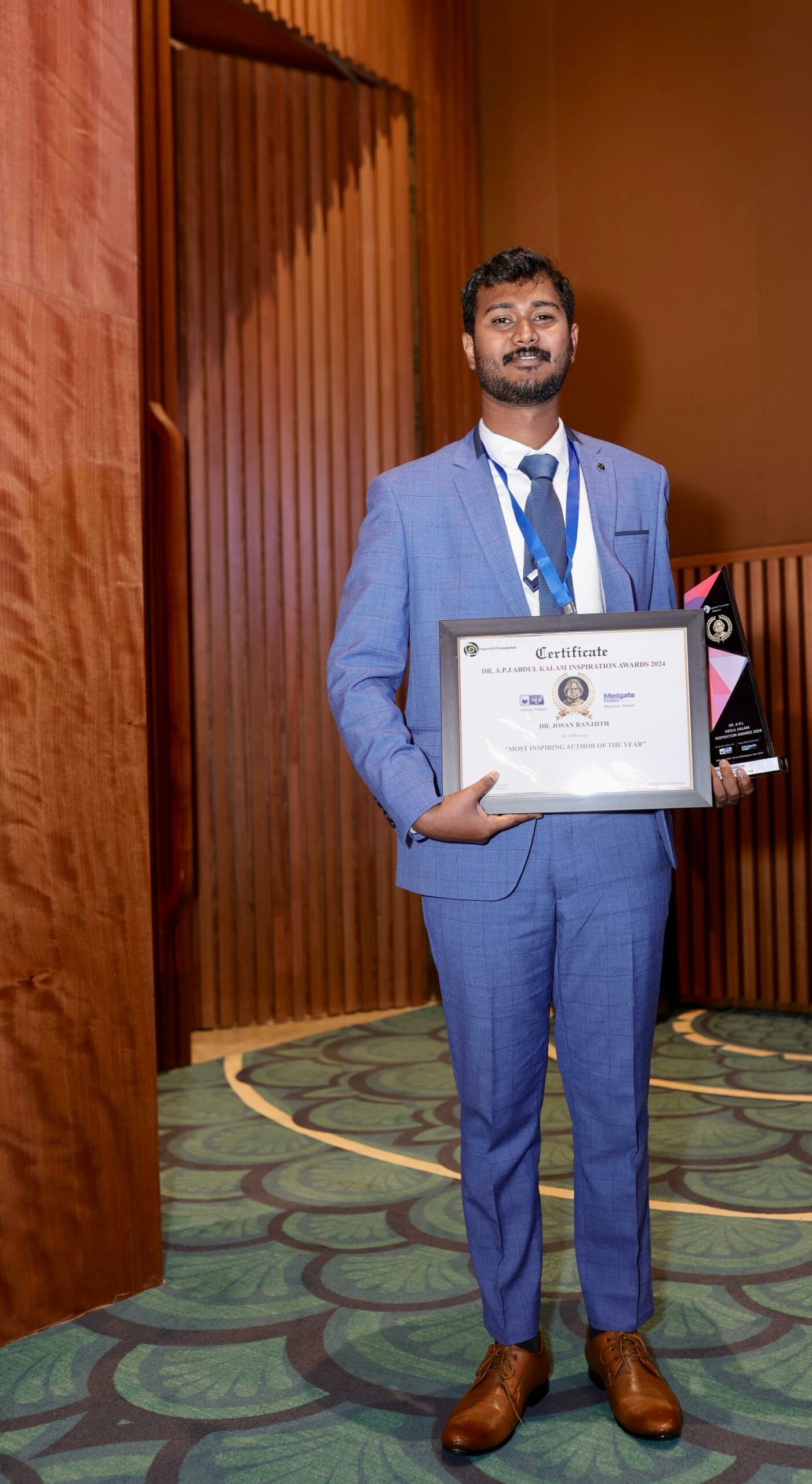 Dr. Ranjjith’s literary prowess has earned him international acclaim and numerous awards. As an international member of the World Human Rights Protection Commission, he was honored as the Youth Education Icon of Tamil Nadu in 2020 and the Inspiring Youth Leader of South India in 2021. His accolades include the International Kalam’s Golden Award for Best Writer of the Year in 2019 and the Man of Excellence Award at the National Brand & Marketing Summit in 2020.