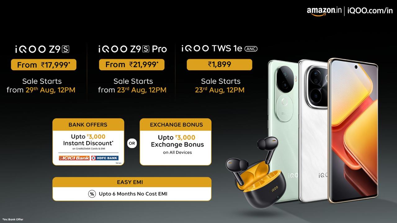 Mr. Ranjit Babu, Director of Wireless and Home Entertainment, Amazon India, said, We are delighted to strengthen our ongoing engagement with iQOO by introducing the feature-rich iQOO Z9s series on Amazon.in, which includes the iQOO Z9s Pro 5G and iQOO Z9s 5G. We are also excited to launch iQOO’s first-ever TWS, the iQOO TWS 1e, with Active Noise Cancellation. The iQOO Z9s series features a sleek design, excellent camera and display, and a long-lasting battery. Adding these products to our growing selection on Amazon.in underscores our commitment to providing the widest range of products, affordability options, and a seamless shopping experience. The iQOO Z9s Pro 5G will be available for purchase starting August 23, 2024, while the iQOO Z9s 5G sale begins on August 29, 2024. Customers can also take advantage of exciting offers, including bank discounts, exchange bonuses, and no-cost EMI options for up to 6 months, on India’s most trusted platform for smartphone purchases.*