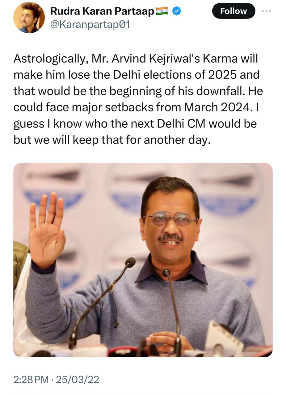 Rudra Karan Partaap stands out and honoured as the Best Astrologer in Political Predictions at the esteemed International Excellence Awards. His distinctive approach integrates individual lifestyles with Ayurveda and herbal remedies. Notably, he has gained recognition from none other than the Prime Minister of India, Shri Narendra Modi, who follows him on Twitter for his remarkable astrological predictions. Many other big politicians and celebrities follow him on X platform what makes him one of the Best astrologer in india.