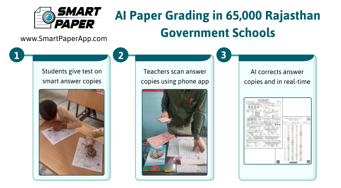 Dr. Fengchun Miao, Chief of the Unit for Technology and AI in Education at UNESCO, recognized Smart Paper in a recent announcement. In his announcement about the selection of AI platforms and tools for learning assessment, Dr. Miao noted, “Smart Paper uses computer vision algorithms and handwriting recognition models to grade paper worksheets for English, Hindi, and Maths.” He acknowledged the significant impact of Smart Paper, which is currently implemented in 65,000 public schools in Rajasthan, benefiting over 4.7 million students and 237,000 teachers through Smart Paper Assessments.